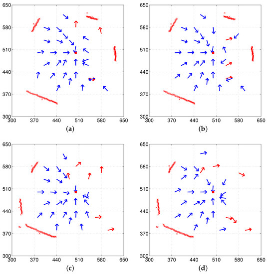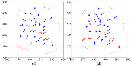 Figure 9 shows the vector map results with the H-DELV method. The points marked with an ‘x’ in