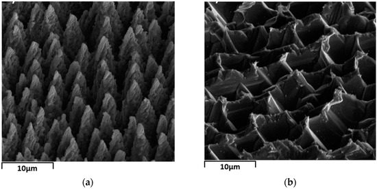 - Her, T.H.; Finlay, R.J.; Wu, C.; Deliwala, S.; Mazur, E. Microstructuring of silicon with femtosecond laser pulses. Appl. Phys. Lett. 1998, 73, 1673–1675. [Google Scholar] [CrossRef]
