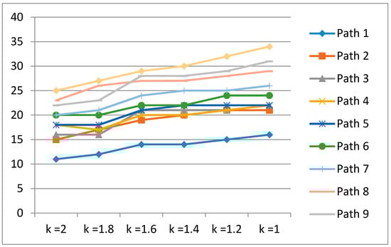 Figure 10 illustrates the number of recalibrations for each experimental path. The number of recalibrations increases with decreasing k values.