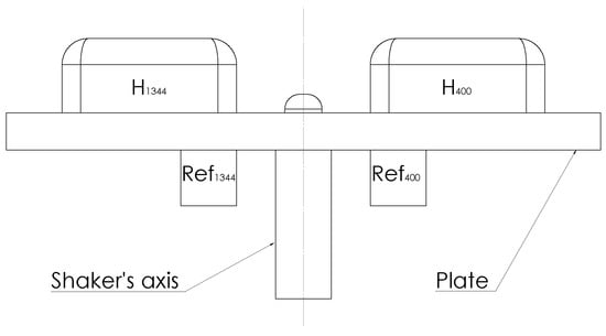 Test bench with the two IMUs (H, H) and the two associated references (R, R). Sensors are excited by a back and forth motion along the shaker axis.