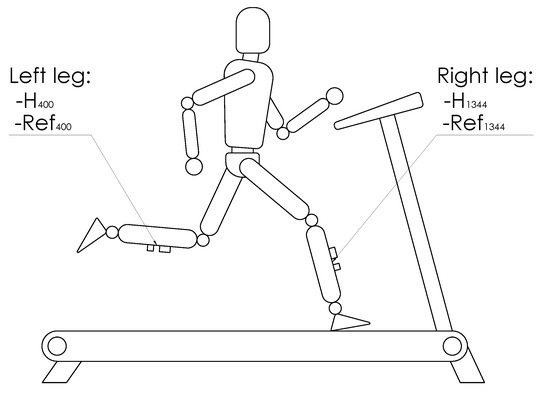 Studies on athletes’ health intend to improve human security and performance against stresses associated to sport activities [1,2,3]. Running related injuries, like the patellofemoral syndrome, iliotibial band friction syndrome, tibial stress syndrome, plantar fasciitis, Achilles tendonitis and meniscal injuries are very common [4,5,6]. Their causes are often manifold due to internal and external risk factors [7], yet a number of works have found that repeated impacts severely increase the risk of an overuse injury [8,9,10,11]. To gain more insight in the development of these injuries, many studies have used accelerometers to investigate the role of accelerations as well as impacts in the etiology of these injuries. Mizrahi et al. [12] measured acceleration at the tibial tuberosity to study fatigue of the human body. Similarly, Friesenbichler et al. [13] assessed muscle fatigue by placing the sensor on the triceps surae. In 2010, Lee et al. [14] evaluated the asymmetry of runners using an accelerometer at the sacrum (S1) level. Based on several studies, frequency and amplitude ranges of tibial acceleration can be determined. Fu et al. [15] concluded that ground surface has no effect on tibial acceleration ( to g across different surfaces). Hamill et al. [16] conclude that this acceleration decreases when the step frequency is higher than the natural one. Gruber et al. [17] give characteristics for Peak Positive Tibial Acceleration (PPA) (which amplitude lies between and g) and the peak power for low (range 6.4–7.2 Hz) as well as high frequencies (range 10.7–14.3 Hz). These results are confirmed by the studies of Bobbert [18], which define two excited ranges: 4–8 Hz and 10–20 Hz.