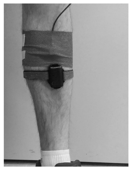 Attachment method of the IMU and the reference sensor on the subject’s leg.