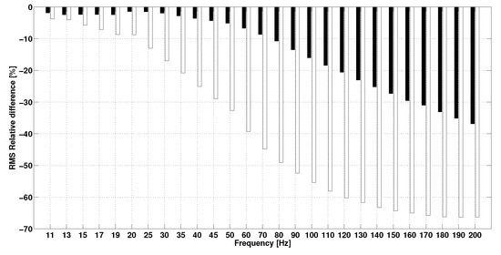 RMS relative difference between the IMUA and its reference vs. frequency (Black: H–R, White: H–R).