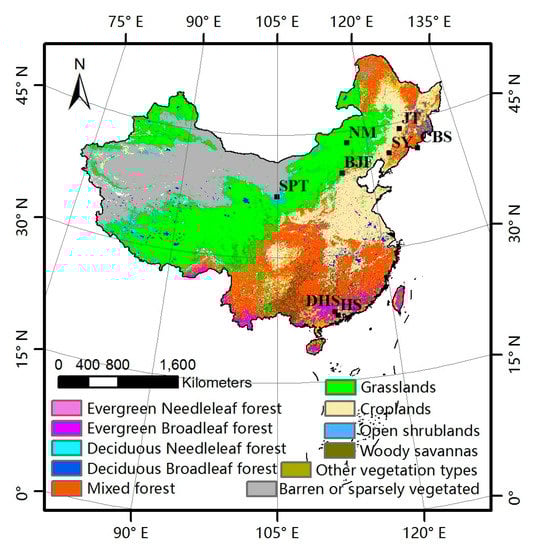 Land cover map and phenological observation sites distribution in China.