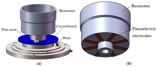 Configuration of cylindrical shell gyroscope. (a) Gyroscope; (b) Resonator.