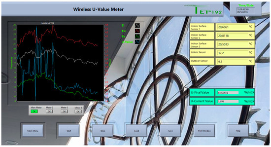 The developed U-Value metre incorporates a user interface (implemented by a virtual instrument, VI) for its remote handling. It receives real time measurements, processes and stores them. The VI allows detecting communication/sensor errors and failures, and warns of anomalies. Finally, the user can create graphs and reports by using the VI. Once the temperature sensors are placed, no process of obtaining the measurements requires human intervention.