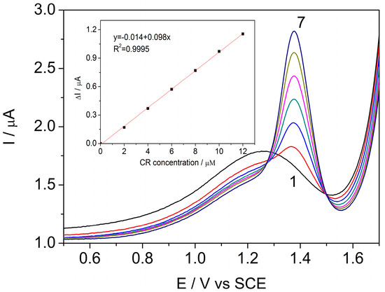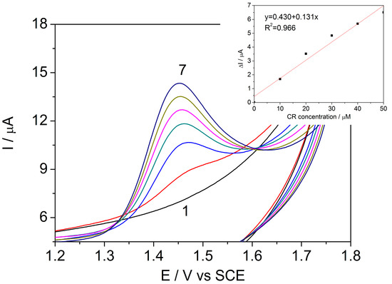 was recorded at the potential +1.45 V/SCE (Figure 2) and increased linearly with CR concentration, allowing a good sensitivity for CR detection.
