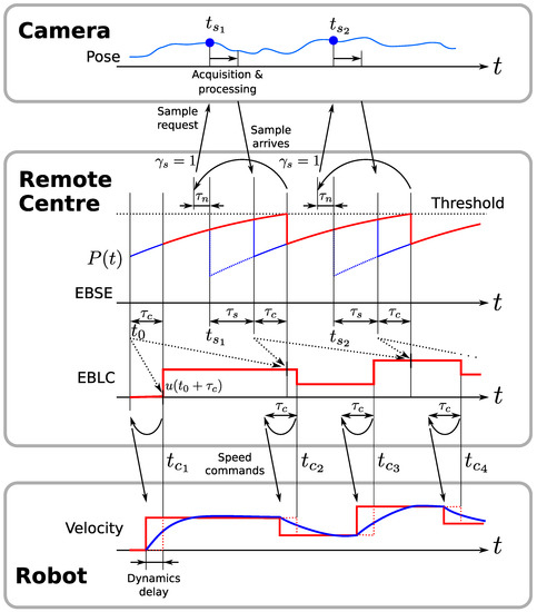 - Trimpe, S.; Buchli, J. Event-based estimation and control for remote robot operation with reduced communication. In Proceedings of the 2015 IEEE International Conference on Robotics and Automation (ICRA), Seattle, WA, USA, 26–30 May 2015; pp. 5018–5025. [Google Scholar]