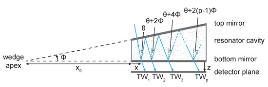 LVOFs are conventionally treated as an array of FP filters composed of parallel mirrors with varying resonator thickness along the length of the device. However, in contrast to the constant value in the FP filter, the angle of reflection changes during propagation in an LVOF, due to the taper of the resonator. This causes the light beam to shift laterally and eventually walk off the wedge-shaped cavity after multiple reflections. With increasing cavity length and mirror reflectivity, the effect of walk-off on the spectral response of an LVOF can no longer be neglected. Instead of the FP approach, the LVOF must be regarded as a Fizeau wedge, in which the tilt angle between the mirrors on both sides of the resonator is taken into account [