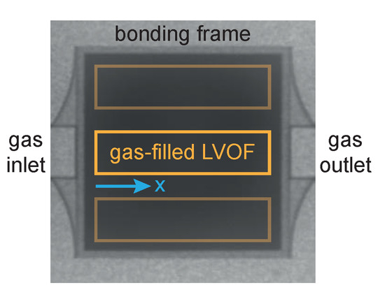 Gas-filled LVOFs are fabricated in a CMOS-compatible process by combining a flat and a tapered mirror by wafer bonding. The flat mirror is sputtered in a KOH etched cavity to define the cavity length together with the level difference formed by the tapered mirror. The first SiO
