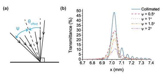 Figure 7b shows the transmission curve with collimated input at the optimum incidence angle of