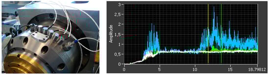 In order to optimize the spindle monitoring quality, the sensors were integrated into the spindle, as close as possible to the bearings, both at the front and rear bearings, for higher sensitivity. The fixture was chosen by epoxy gluing, due the large bandpass required for a high speed spindle. Shielded cables were retained (in order to avoid electromagnetic interference) to conduct the signals from the spindle to the electrical cabinet after installation in the machine tool. NI9234 cards are used for the acquisition.