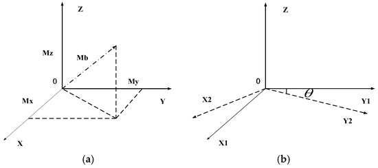 In the proposed PDR algorithm, the heading value is mainly calculated by magnetometer and gyroscope. In Figure 6a, the magnetometer output will determine the initial heading, and the change in direction will be determined by the gyroscope. The earth is a bipolar magnet. It has a component that always points to the magnetic north direction, and the projection of this component in three axes, as measured by magnetometer, can determine the direction of the carrier. The change in angle is determined by integrating the angular velocity values, as shown in Figure 6b.