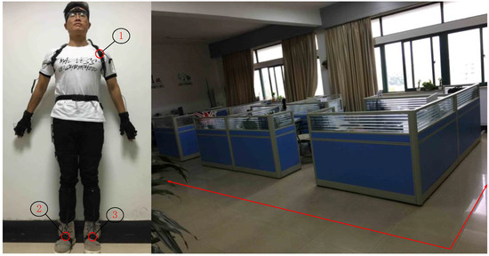 The indoor positioning system designed in this work consists of a hardware terminal and a navigation unit. The hardware includes the UWB sensors and IMU (Figure 8). The navigation unit of the PC estimates the position of the pedestrian by fusing the location data of UWB and the location and attitude calculated by IMU, thus plotting the pedestrian trajectory.