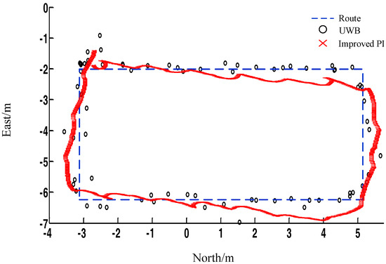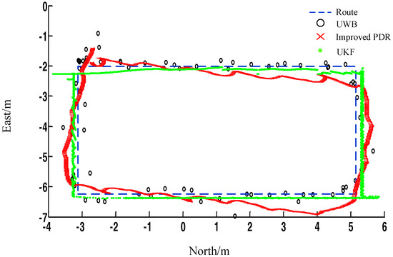 Although the improved PDR method proposed in this study is more accurate than the traditional PDR algorithm in positioning results, it can still be difficult to utilize in the application requirements of some indoor environments because of the existence of cumulative error. The positioning accuracy of the UWB positioning method is relatively high, but its signal propagation is vulnerable to occlusion, and it cannot guarantee the continuous and stable positioning accuracy, causing its poor dynamic performance. The proper combination of the two methods can ensure high positioning accuracy and improve dynamic performance.