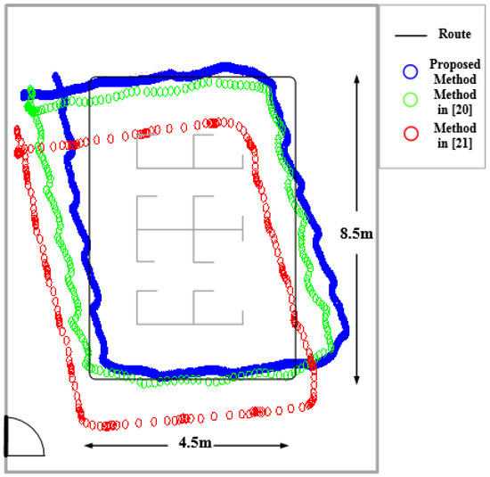 As shown in Figure 15, the method in the current work has better static positioning performance than methods in [20,21]. Table 5 further proves the validity of the proposed method. In addition, Figure 15 confirms that the method has better dynamic performance.