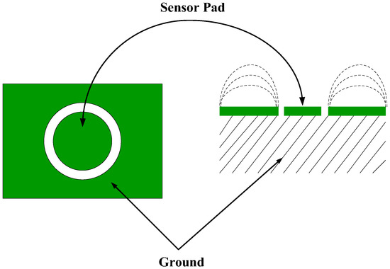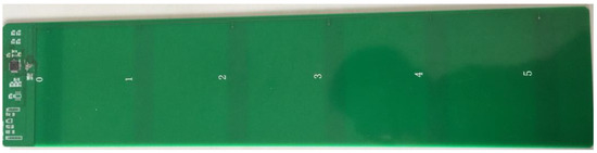 The indoor positioning dynamic reference system used in this work is based on the principle of capacitive touch induction, Figure 16 shows a capacitive touch panel, where the middle green round is copper, which can be called a “key”. These buttons lead to a wire attached to the MCU, which detects whether the button is “pressed” by a wire. Figure 16 shows the capacitance sensing module designed in this work. The module is mainly composed of a capacitance induction chip MPR121 and a master chip STM32F103C8T6, and the capacitor induction chip and MCU communicate by IIC. Each capacitive sensing module contains six capacitive sensing chips, each spaced at 6 cm. To apply the capacitive sensing module to pedestrian location detection, the circular copper strip is designed as a long strip shape. In the walking process, when the foot touches the capacitor module, the corresponding capacitance sensing chip will react immediately and output in real-time the pedestrian position. The low cost and fast response of the MPR121 chip provide the precondition of the validity of the positioning reference system.