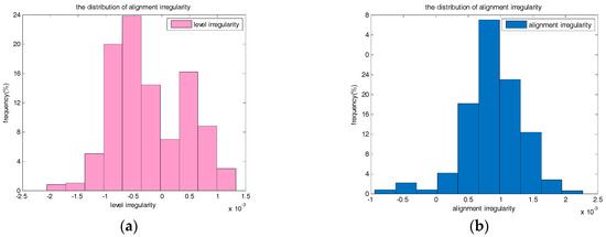 (a) The distribution of level irregularity measurement accuracy; (b) The distribution of alignment irregularity measurement accuracy.
