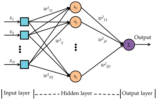 Figure 5. Multilayer perceptron neural network block diagram. i is the sensor index, j is the index for hidden layer neuron, and d is the index of output layer neuron.