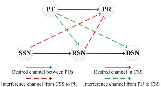 We consider an underlay CSN consisting of a primary system and a cognitive sensor system (CSS), as illustrated in Figure 1. The primary system contains a primary transmitter (PT) and a primary receiver (PR), and the CSS contains a source sensor node (SSN) and a destination sensor node (DSN). There is no direct link between SSN and DSN. Thus, the signal transmitted from SSN to DSN is forwarded by a relay sensor node (RSN).