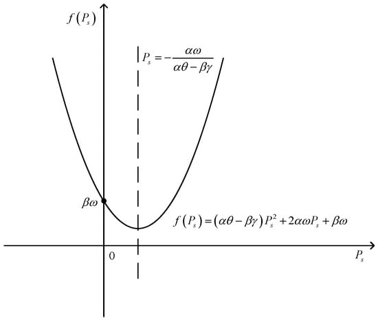 when , as shown in Figure 4b. When , we can obtain , , is a monotone decreasing function of ; when , we can obtain , , is a monotone increasing function of . Thus, the optimal value of can be obtained as