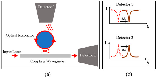 Optical resonators or optical resonant sensors are evanescent wave-based sensors [36], which can be fabricated as a microstructure with different geometries. The sensors trap light inside their microcavities, allowing the optical rays to resonate in the confined space aided by light coupling via optical waveguides. Optical resonators are used not only for biomedical detection [21,96,97] but also for gas detection [98], environmental control [87], toxin detection [99], temperature detection [70,100], microforce detection [67], single protein detection [90] and even nanoparticle detection [101,102].