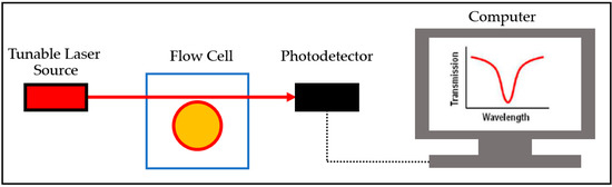 Microfluidic systems have been introduced and combined with optical resonator systems. Microfluidics are mostly chip-based technology for manipulating and controlling small volumes of fluids, which enables the use of small amounts of patient sample [103,128]. Given the high Q-factor of the resonator, the sensors can perform well with low volumes of analyte. The sensor can be placed in the microfluidic channel designed specifically for the analyte [129]. Thus, sample preparation and analysis are integrated, enhancing significantly higher throughput than a process requiring separate sample preparation, e.g., micro total analysis system (μTAS) and LOC.