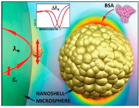 - Arnold, S.; Khoshsima, M.; Teraoka, I.; Holler, S.; Vollmer, F. Shift of whispering-gallery modes in microspheres by protein adsorption. Opt. Lett. 2003, 28, 272–274. [Google Scholar] [CrossRef] [PubMed]