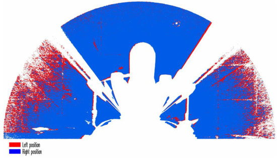 A disadvantage of the TLS method consists of the high purchasing cost of a scanner. This disadvantage can be remedied by ordering the measurements as a service from a specialized firm. Other disadvantages include the scanner sensitivity to soiled or scratched cabin screen glass and to the reduction of glass transparency due to heavy tinting. These glass treatments will manifest in a lower density of obtained points in the clouds, as in the case of a driver’s side vision shown in Figure 4. Problems may also be caused by the use of metal-coated foils that prevent the cabin from overheating in the summer. The processing of the measurement results requires software equipment, which allows for the described work operations.