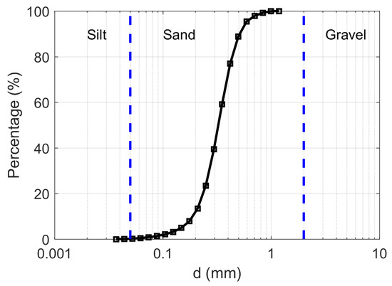 Particle size distribution of the sand used for testing AHFO soil moisture estimation.