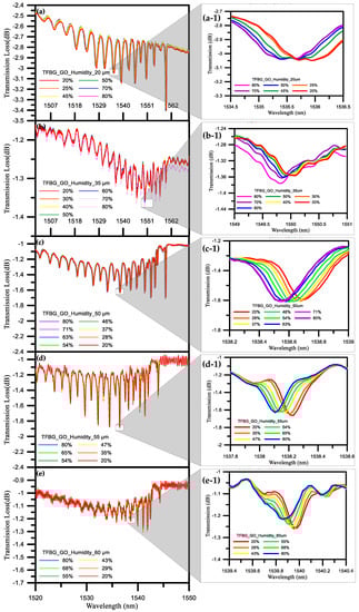 - Dissanayake, K.P.W.; Wu, W.; Nguyen, H.; Sun, T.; Grattan, K.T.V. Graphene oxide coated long period grating based fibre optic humidity sensor. In Proceedings of the 2017 25th Optical Fiber Sensors Conference (OFS), Jeju, Korea, 24–28 April 2017. [Google Scholar]