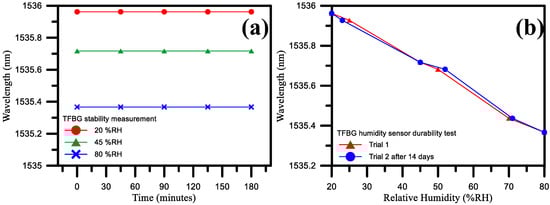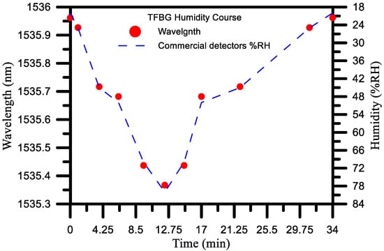 - Wang, Y.; Shen, C.; Lou, W.; Shentu, F.; Zhong, C.; Dong, X.; Tong, L. Fiber optic relative humidity sensor based on the tilted fiber Bragg grating coated with graphene oxide. Appl. Phys. Lett. 2016, 109, 031107. [Google Scholar] [CrossRef]