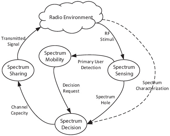 In 2000, the Cognitive Radio Network (CRN) paradigm was proposed by Mitola [4], which uses cognitive processes that can observe the current state of the network and then decide, act and plan based on those observations. CR became a favorable concept to overcome inefficiency in spectrum usage, both in unlicensed and licensed bands [5,6,7,8,9]. Meanwhile, static spectrum allocation in wireless services causes temporal and geographical holes in the spectrum in authorized bands [10,11]. To utilize the unoccupied band and to resolve the spectrum scarcity problem, the Federal Communications Commission (FCC) has decided to allow the coexistence of unlicensed users defined as Secondary Users (SUs) and licensed users named Primary Users (PUs), through the opportunistic use of spectrum holes without hindering the performance of the PUs [12,13].