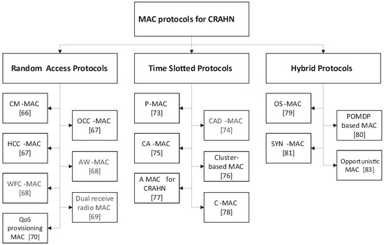 - It reviews the state-of-the-art MAC protocols in CRAHN. The pros and cons of each protocol are discussed, and the performance issues are highlighted.