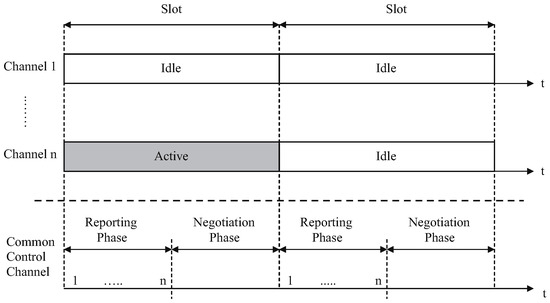 These MAC protocols divide time into slots, offering an inherent collision-free scheme for the control channel, as well as for the data transmission. Several of these protocols are based on Time Division Multiple Access (TDMA) and need network-wide synchronization. Similar to the random access protocol, time slotted MAC for CRAHN is also investigated in the literature. For example, energy efficient cognitive radio multichannel (ECR-MAC) [71] uses explicit frequency negotiation and time negotiation to achieve power savings by having an idle node go to sleep mode. The cognitive-radio-based multi-channel MAC (CRM-MAC) protocol [72] exploits the use of double transceivers to improve performance. In the following subsections, we analyze some of the time-slotted MAC protocols in more detail.