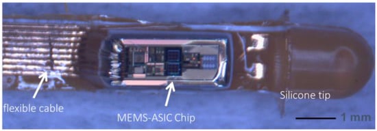 Biocompatible packaging of the multi-sensor MEMS-ASIC chip with flexible PCB.