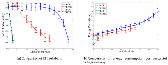 Furthermore, we employed the automatic repeat request (ARQ) mechanism in RCR, while REER did not have that mechanism. With the increase of f, RCR exhibited higher reliability than REER.