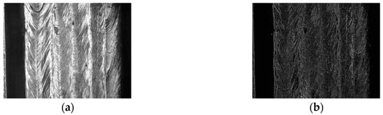 Besides the structured light method, there are many other weld position detection methods based on various visual features, such as grayscale gradient and texture features. For example, Du et al. proposed that the Haralick’s texture features such as “energy” and “entropy” are greatly different between the base metal and the beads, which can be used for weld position detection [32]. Zeng et al. studied the Hu’s invariant moments and found that compared with the Haralick’s texture features, the first invariant moment has higher separation degree in weld position detection fields [33]. Zou et al. fused the grayscale gradient information and the structured light image using conference-weighted method, which achieved an accurate detection result when the structured light distortion is small [34]. Krämer applied the texture features in T-joint position recognition using machine learning methods, and obtained a satisfactory detection result [35]. The studies mentioned above may give accurate results when there is no or only one weld pass, but no relevant research has been reported in multi-pass detection fields. In addition, most of these methods can only obtain 2D path information using the grayscale image of the workpiece, which indicates that they may not be able to distinguish the weld passes in different layers. Moreover, the distributions of the grayscale gradient and texture features are usually so non-uniform and complex that it is hard to distinguish the borders of the adjacent weld passes, as shown in Figure 4. Overall, there is no suitable detection method in the MLMPW recognition fields to date.