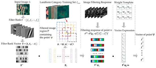 In Figure 4, is the vector expression of filter bank . After the convolution of and image , the corresponding filtering response of point is defined as Equation (6).