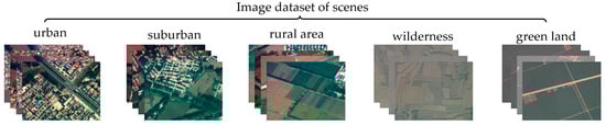 Scene recognition has long been a popular and significant research field []. Image scene recognition, the most common task of aerial remote sensing applications, is the process of marking images according to semantic categories, such as seashore, forest, field, mountain, and city scenes. Scene recognition has also been the research focus in machine learning, computer vision, and image processing, among others.