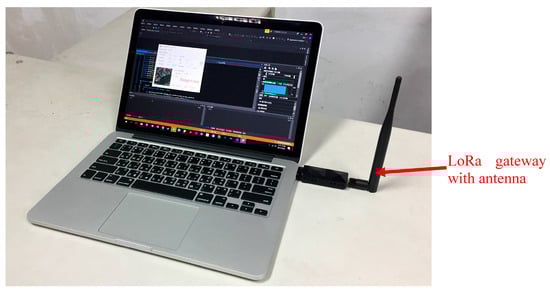 LoRa communication has the advantages of long distance transmission, low cost, low power consumption, and having anti-jamming technology, which is suitable for use on wearable devices with low power consumption. The wearable device that is developed in this paper uses IL-LoRa 1272 [25] to transmit the sensor data. The back end receives the data obtained by the sensor via the LoRa gateway and sends a thermal heat stroke risk level to the wearable device. Figure 6 is the LoRa gateway and computer connection creating the back end device. The LoRa module is an important device in our system. This communication can reduce the power consumption and increase the data transmission distance, making it suitable for the wearable device sending information to the terminal device.