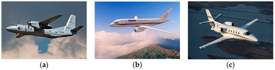 The Imagery targets. (a) An-26 airfreighter; (b) Yark-42; (c) Citation business jet.