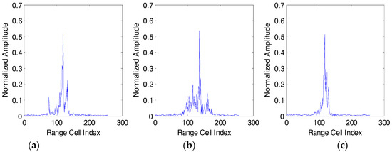 HRRP can be regarded as the amplitude of the coherent summations of the complex time returns from target scatters in each range cell [3], which represents the projection of the complex returned echoes from the target scattering centers onto the radar line-of-sight (LOS) [4]. The illustration of an HRRP sample from a plane target is shown in Figure 1. Since HRRP contains the target-important structural features such as target size and the distribution of scattering centers, etc., radar HRRP target recognition has drawn much attention from the radar automatic target recognition community [3,4,5,6,7].