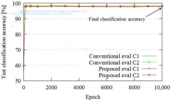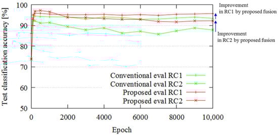 Figure 12 portrays the classification errors for similar trajectories. The classification accuracies of the proposed and conventional methods are and , respectively. Thus, for similar trajectories, there is no major difference between the proposed and conventional methods in terms of classification accuracy. In the similar trajectory cases considered in Experiment 2, the pallet comes in sight at almost the same point, and the classification task is easy. Therefore, the results with and without fusion are almost the same.