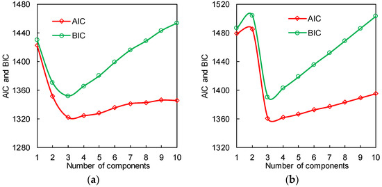 Criterions for GMM component determination: (a) ZLNL4-14; (b) ZLNL4-16.