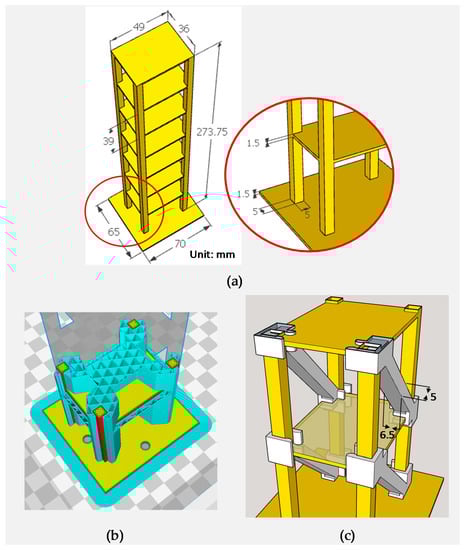 2.1. The 3D-Printed Structural Model and Composite Bracing Systems