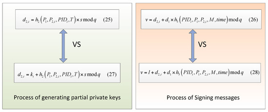 Upon receiving the , the RSU verifies the validity of via checking the equation . If the equation holds, then it accepts the , else it applies the PKG for the partial secret key again. Then the RSU calculates the short-term pairwise encryption keys: