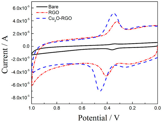 - Mei, L.; Song, P.; Feng, J.; Shen, J.; Wang, W.; Wang, A. Nonenzymatic amperometric sensing of glucose using a glassy carbon electrode modified with a nanocomposite consisting of reduced graphene oxide decorated with Cu2O. Microchim. Acta 2015, 182, 1701–1708. [Google Scholar] [CrossRef]