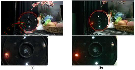 Comparison of captured images of a rotating LED plate; (a) two-exposure MEHDR images and (b) SEHDR images.