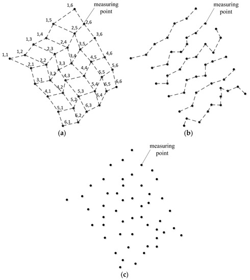 Three different kinds of distribution of data points: (a) grid data; (b) quasi-scattered data; (c) completely scattered data (quasi-scattered data is stored according to the order of measurement which is the main difference from completely scattered data).